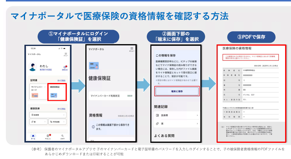 - マイナポータルから取得できる「被保険者資格情報(PDFまたは印刷物)」